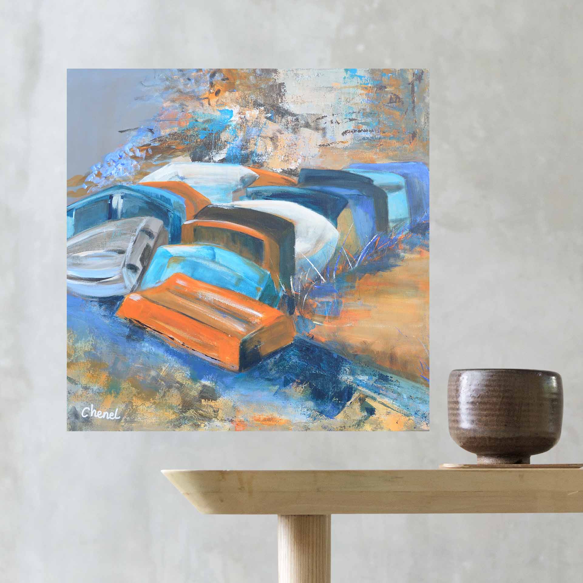 Cette œuvre d’art unique, intitulée « La Cale aux Annexes », évoque la vie maritime et portuaire. Son format de 60 x 60 cm en fait un choix parfait pour embellir votre espace de vie, que ce soit dans un salon, un bureau, une salle d’attente, ou une pièce dédiée à l’art.