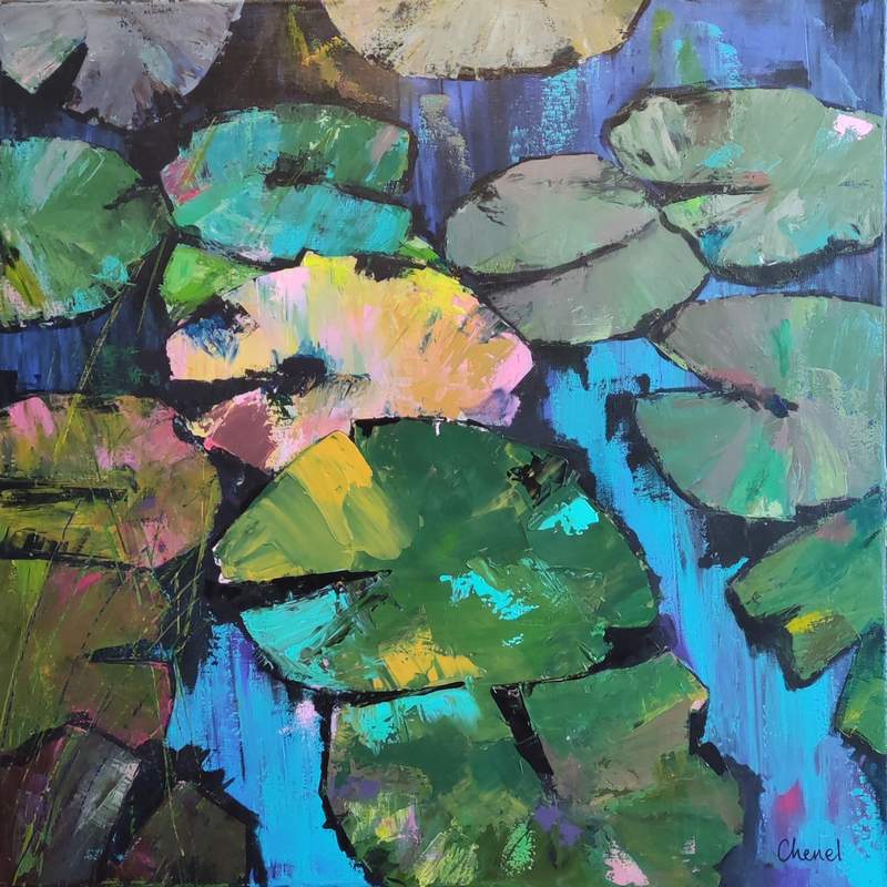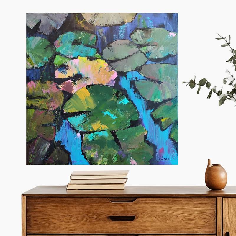 « Les Nénuphars » est une œuvre unique réalisée en peinture acrylique sur une toile montée sur châssis.